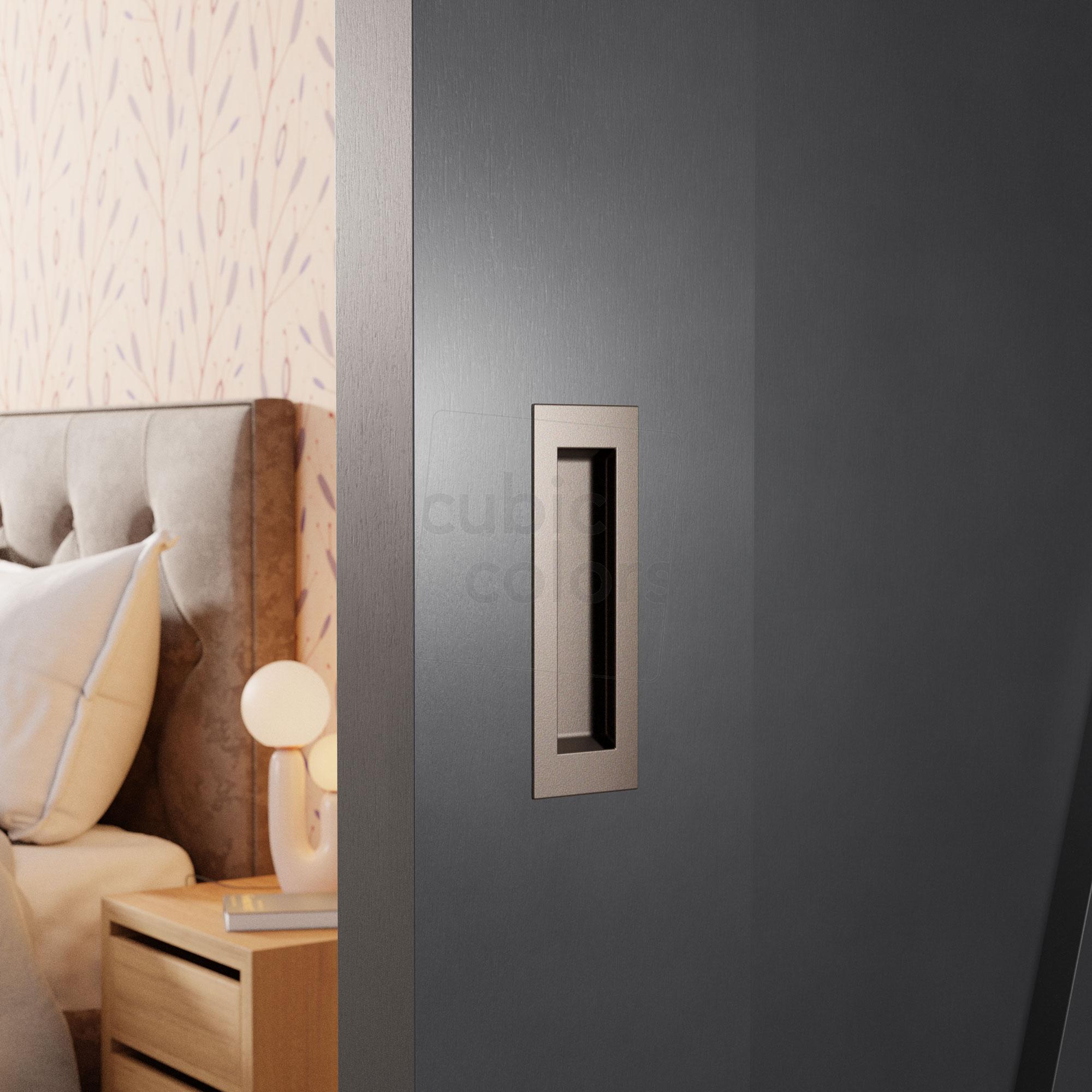 • De schuifdeurkom ligt behoorlijk vlak in de deur, zodat andere deuren hiervoor langs kunnen schuiven.